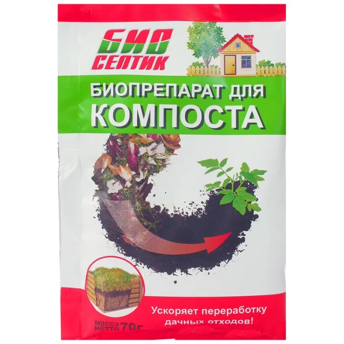 Эффективно разлагает органические вещества, способствует быстрому перегниванию скошенной травы, опавшей листвы.