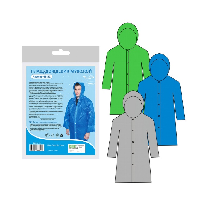 —Плащ-дождевик мужской на застежках Мультидом, размер 48-52, микс