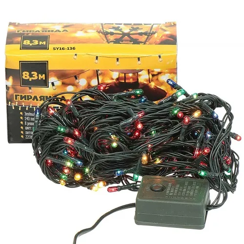 Гирлянда имеет зеленый ПВХ-провод, который идеально сочетается с зелеными деревьями и кустами. Длина провода 8 метров позволяет украсить большую площадь своим праздничным настроением.