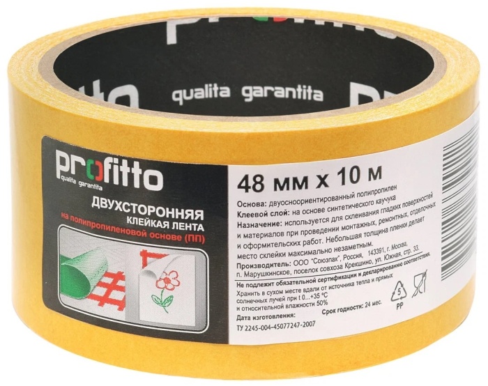 —Клейкая лента двухсторонняя 48мм х 10м полипропилен PROFITO