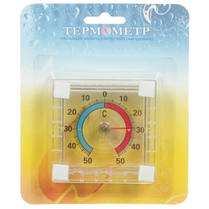 Оконный биметаллический квадратный термометр определяет температуру воздуха снаружи помещений. Крепится на окно. Выполнен из прочных материалов.