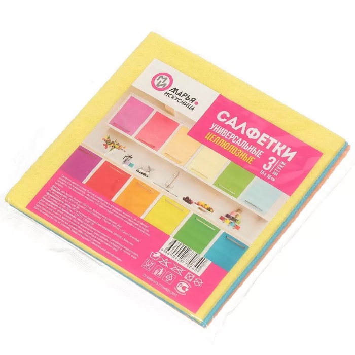 Салфетка "Марья-искусница" выполнена из 100% целлюлозы. Она предназначена для влажной уборки: мытья посуды, бытовой техники, кухонной утвари, сантехники, кафеля. Изделие прекрасно впитывает жидкости, не оставляет разводов. Салфетка повышенной прочности, долго служит, имеет оптимальный для уборки размер. Благодаря натуральному составу, салфетки гипоаллергенны и максимально комфортны при контакте с кожей рук.