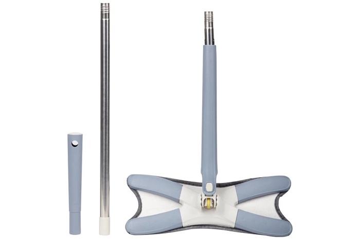 Инновационная швабра с простым и эффективным механизмом отжима. Одним движением лопасти швабры складываются, насадка скручивается и отжимается. Уникальная конструкция рамки позволяет убирать вокруг ножек стола и стульев