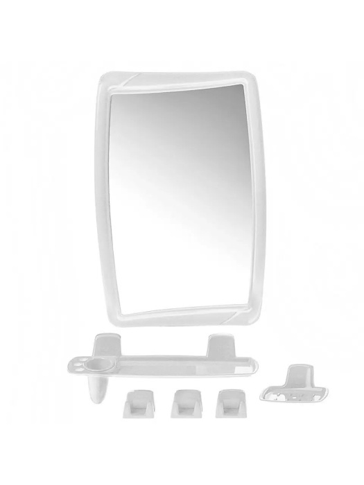полка с отверстиями под стакан и зубные щетки и местом, куда можно положить аксессуары для волос или косметические средства;