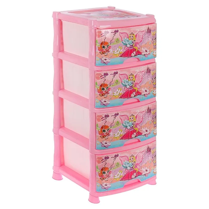 Комод Дисней удобен компактностью и легкостью. Его можно расположить в любом подходящем месте, а затем легко переместить. В отличие от отдельных ящиков, в комоде можно хранить игрушки и предметы меньшего размера, но в более четком порядке. И это могут быть не только игрушки, но и носки, майки, детские трусики и т.п., что нужно ребенку постоянно. Так ребенок быстро научится брать эти предметы в своем комодике, а не будет кричать, готовясь к прогулке: «Мам, а где мои носки?». Очень часто можно встретить пирамиду из ящиков для игрушек. Но в этом случае лучше комод – ведь он дает возможность заглянуть в любой отсек без перестановки ящиков. Еще одна прелесть пластикового комода в том, что его можно использовать и на даче, ведь перемещать такую мебель легко! Комод поставляется в разобранном виде и собирается (а при желании разбирается) силами покупателя. Пластиковый комод изготовлен в России из высококачественного пластика по стро